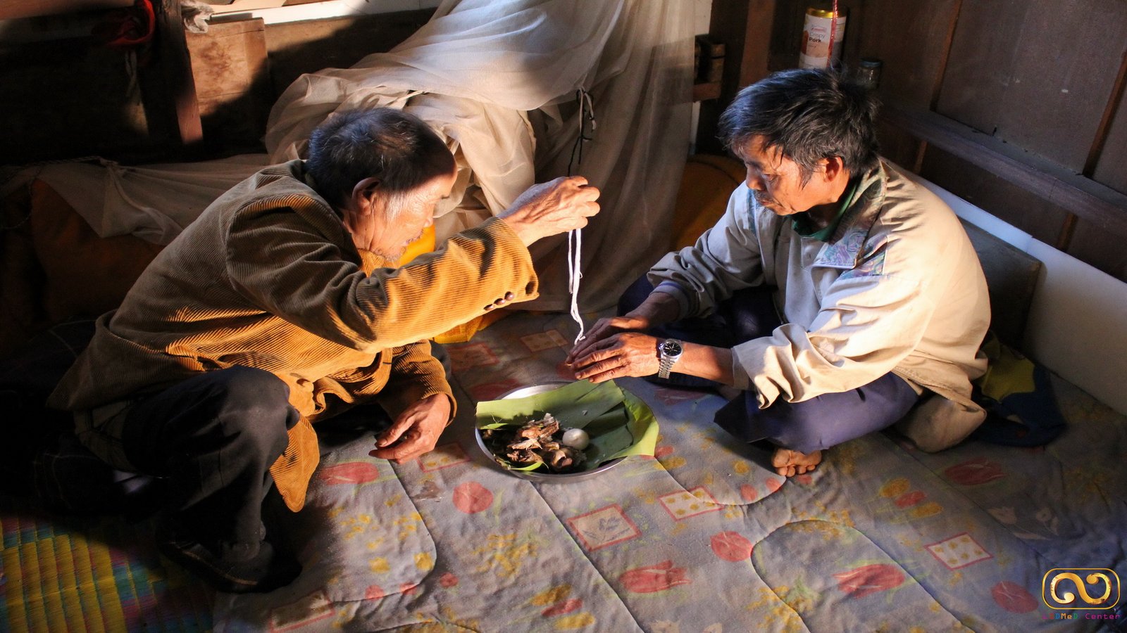 10. ผูกด้ายบนข้อมือพร้อมกล่าวคำภาษาถิ่น